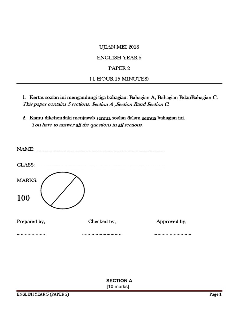 Kertas Soalan Bahasa Inggeris Tahun 5 Boxsderp